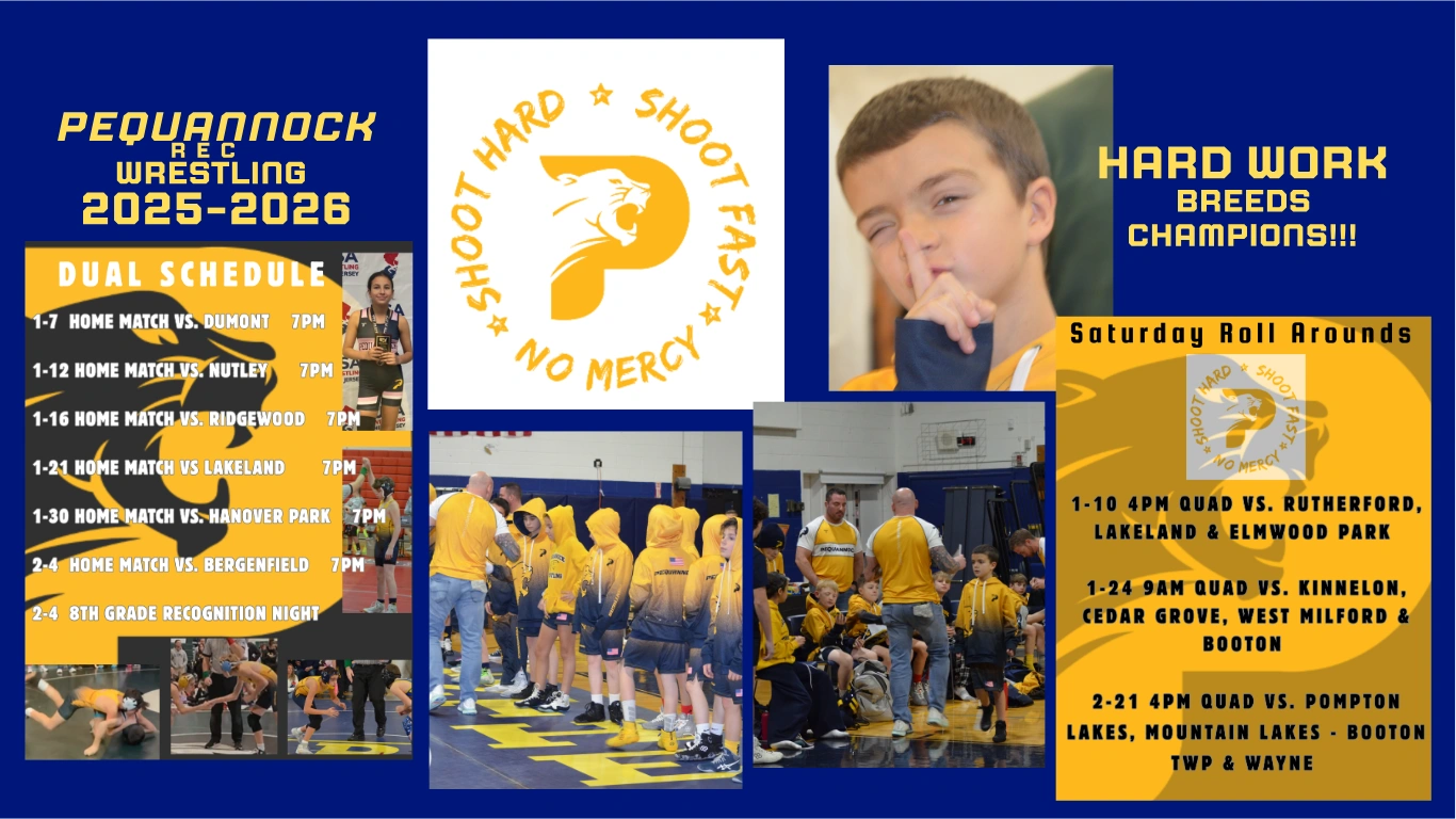 The Pequannock Rec Wrestling program has been a successful feeder program for our towns high school for over 50 years. Our program has been essential in providing a solid foundation and the tools necessary for our young wrestlers to be successful at the high school level. The Pequannock Rec Wrestling Program has helped some of the best wrestlers in our town's history become successful on and off the mat.